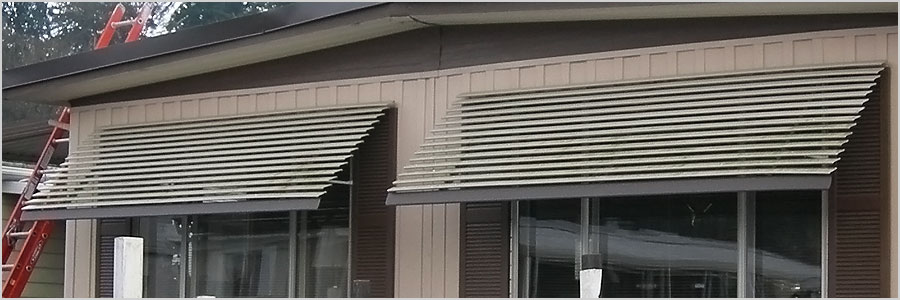 The beauty of the Panorama window awning is found in its design. Overlapping horizontal slats block the sun’s rays without blocking the views. This awning is a contemporary addition to any home or building. Available in many current designer colors and painted with a Baked-On-Enamel finish.